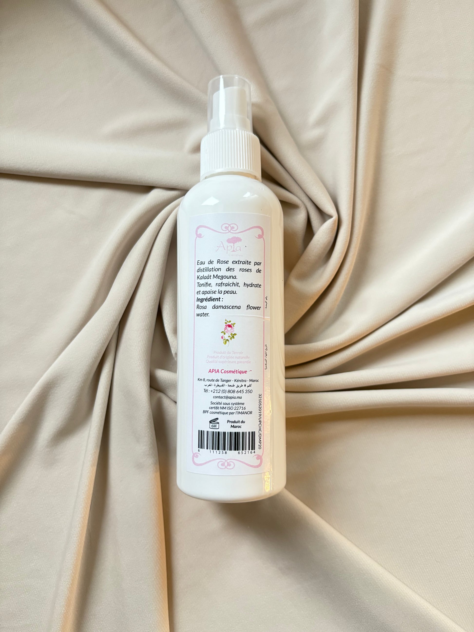 Dieses Rosenwasser (Eau de Rose) wird durch Wasserdampfdestillation aus Rosen aus der Region Kelaat M’Gouna in Marokko gewonnen. Es erfrischt die Haut, spendet Feuchtigkeit und wirkt angenehm beruhigend.
